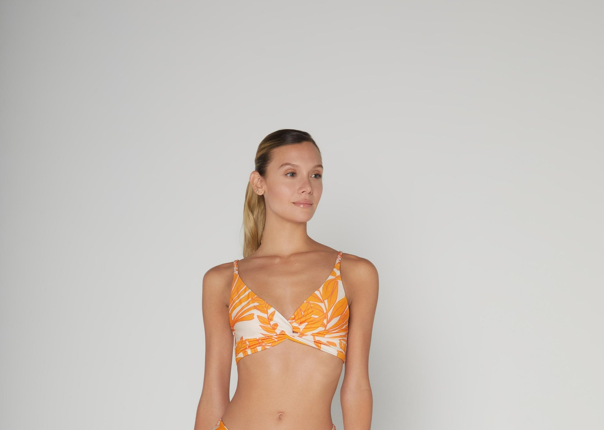 El nudo frontal y las correas trenzadas del top añaden un toque de singularidad, mientras que los hombros ajustables y el acolchado extraíble ofrecen comodidad y versatilidad.